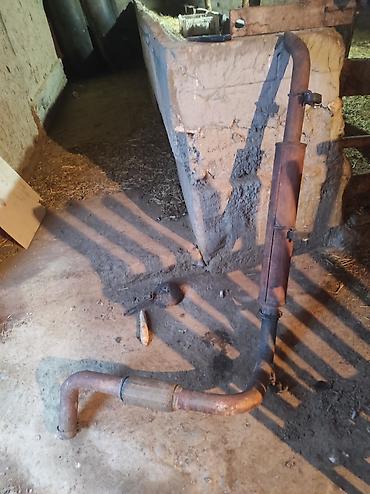 Труба выпускной системы (участок выхлопа) - Отрезок выхлопной магистрали с фланцем под крепление (4 отверстия). - Диаметр ориентировочно 50–60 мм, из толстой стальной трубы. - Имеются два свар...