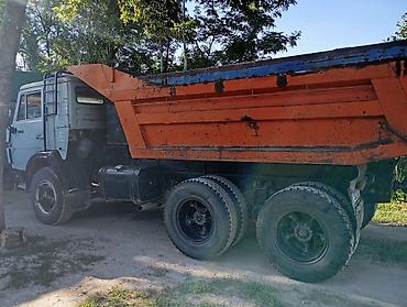 КАМАЗ самосвал, трехосный (6х4). Классическая кабина КАМАЗ, металлический кузов-«ванна» с гидроподъёмником для разгрузки назад.