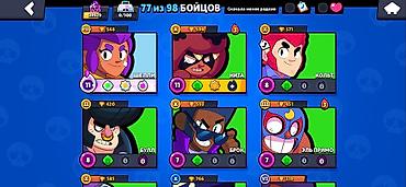 - Боёв: 77 из 98 разблокированных бойцов (видно Шелли, Нита, Кольт, Булл, Брок, Эль Примо и др.)