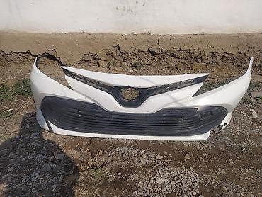Передний бампер для Toyota Camry (XV70, рестайлинг/дорестайлинг — ориентируйтесь по дизайну на фото), цвет белый.