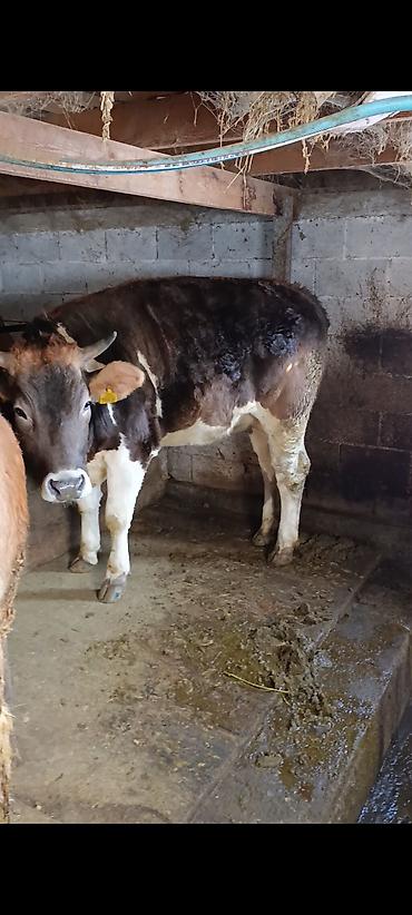 Бык-подросток черной масти, с биркой в ухе. Содержится в стойле, на грубом и сочном корме. Плотный костяк, развитая мускулатура, прямой постав ног. Подходит для откорма на мясо или для разведения. ...
