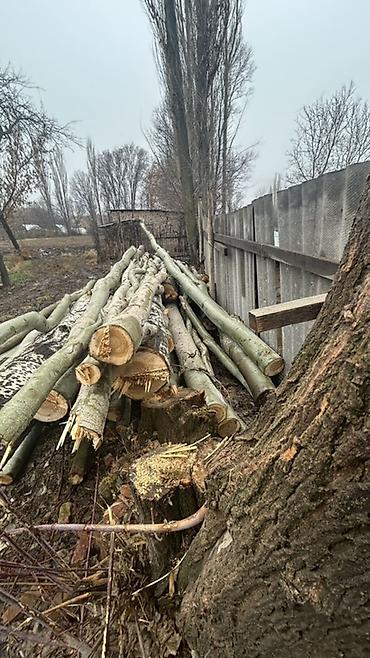 Дрова из свежеспиленных стволов (похоже на тополь/ивняк): крупные бревна и ветки разных диаметров. Характеристики: - Порода: светлая древесина с серо-бурой корой, ровная структура волокна — хорошо...