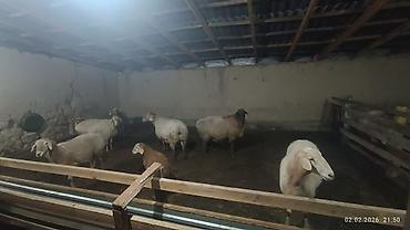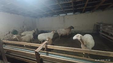 Овцы (стадо). - Порода: мясо-шерстное направление, преимущественно тёмные и светлые масти. - Количество: на фото группа взрослых особей. - Типы: матки и молодняк вперемешку. - Особенности: крепкие...