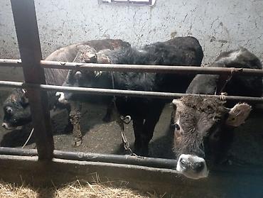 Быки на откорме (2 головы) - Породы: светлый бык мясного направления (помесь с шароле/лимузином по типу), второй — черно-пестрый бык молочно-мясного направления. - Возраст: молодняк. - Назначение:...