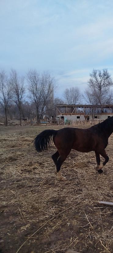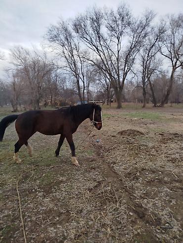 Лошадь (мерин/жеребец не указан), масть гнедая с белой проточиной на морде и белыми отметинами на ногах. Компактного, крепкого телосложения, выраженная мускулатура, высокий постав шеи, густая грива и хвост. На фото видно уверенный, свободный ход рысью и галопом, ровные конечности, крепкие копыта. Повод и недоуздок в комплекте на снимках.