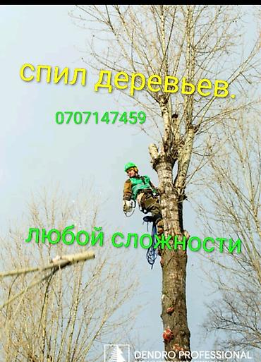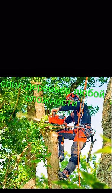 На изображениях указано: «Спил деревьев любой сложности».