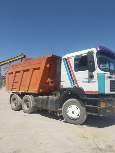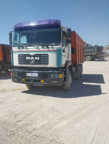 Самосвал MAN 6x4 - Конфигурация: трехосный самосвал (формула 6x4) - Кузов: металлический, усиленные борта, задняя откидная дверь; подходит для перевозки сыпучих грузов (щебень, песок, грунт), тюко...