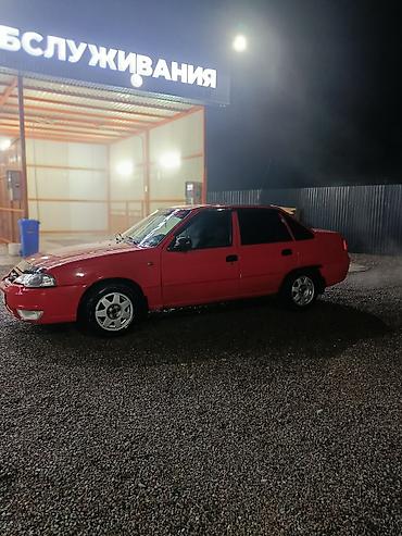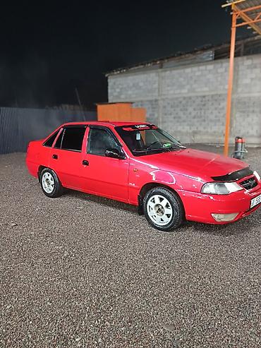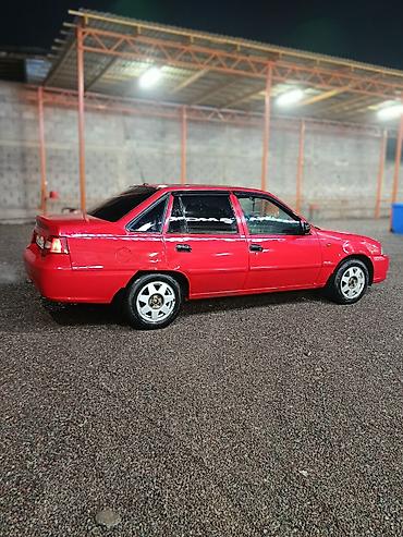 Автомобиль: седан Daewoo Nexia (рестайлинг). Цвет кузова: красный. Кузов четырехдверный, компактного класса.