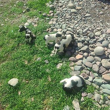 - На фото помет активных щенков с короткой гладкой шерстью, контрастный черно-белый окрас (пятнистые спинки, темные уши и маски).