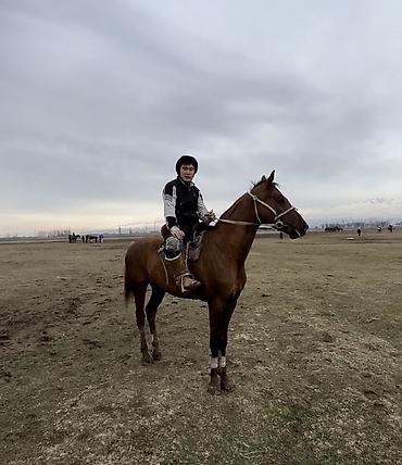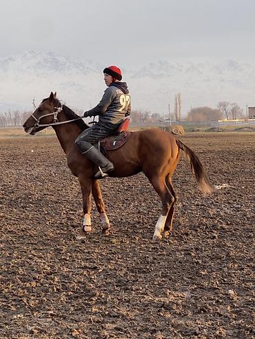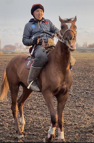 Спортивная лошадь для кок-бору/баигê. Рыжая масть с яркой проточиной на лбу, компактный крепкий корпус, сухие ноги, выраженная мускулатура шеи и груди. Высокая выносливость и резвый старт, удобные переходы аллюров, чутко держит повод и мгновенно откликается на шенкель. Уверенно работает в группе, не теряется в контакте, устойчиво держит равновесие на разворотах и торможениях. Подходят всадники среднего и высокого уровня.