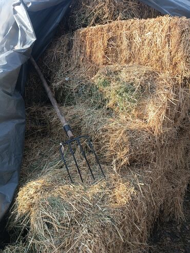 Беде тук 80шт Предлагаются тюки сена, представляющие собой прессованную сухую траву. Сено имеет естественный золотисто-коричневый цвет с включениями зеленой растительности, что указывает на свежесть заготовки. Данный продукт подходит для использования в качестве корма для сельскохозяйственных животных или подстилки. Тюки удобно складировать и транспортировать благодаря их форме.