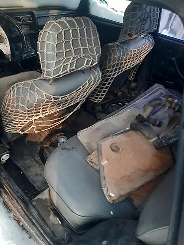 Салон: серые сиденья с плетёными накидками, классическая панель приборов ВАЗ, механическая коробка передач. На заднем ряду лежат запасные детали и элементы обшивки.
