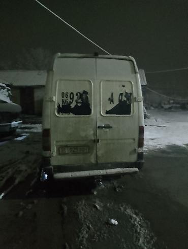 Продаётся микроавтобус Mercedes-Benz Sprinter (длинная база, высокий крыша). Кузов – цельнометаллический фургон с двустворчными задними дверями и боковой сдвижной. На задних окнах – тонировка/наклейки, есть задний бампер‑подножка.