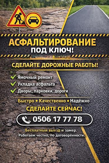 Асфальт, дорожные работы. Качественно, по всем требованиям Гос. стандарта. 10лет на рынке. Построили городские дороги как: южная магистраль, дорога аэрапорта и многие мелкие, которые до сих пор в...