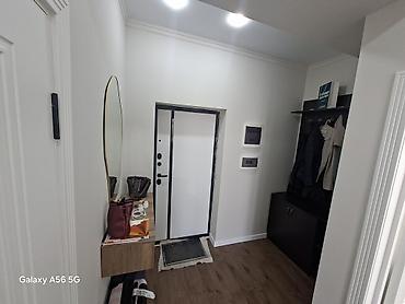 - Прихожая с системой хранения: шкаф/тумба для обуви, вешалка, настенная консоль и большое зеркало; установлены домофон/панель управления.