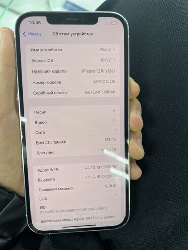 - Память: 128 ГБ, доступно около 115 ГБ (см. скрин настроек).