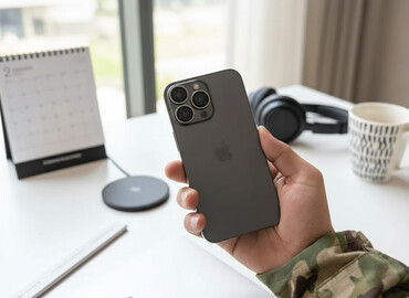 IPhone (линейка Pro) - Цвет: чёрный/тёмно‑серый (матовый корпус) - Корпус из металла с плоскими гранями, матовое стекло на задней панели - Тройной модуль основной камеры + лидар/вспышка - Ночной р...