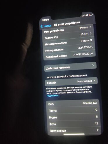 - Классический iPhone X с OLED‑экраном, поддержкой Face ID (в меню отмечена неполадка), жестов iOS и режима True Tone.