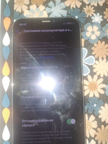 - iOS; на экране видно: состояние аккумулятора — максимальная ёмкость 100%, включена оптимизированная зарядка