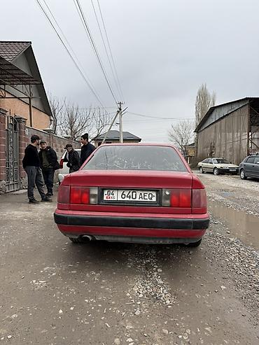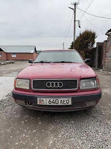 Audi 100 C4, седан, красный цвет кузова. Классический дизайн с широкой решёткой радиатора и фирменными четырьмя кольцами. Кузов 4‑дверный, вместительный салон и багажник. Объем 2