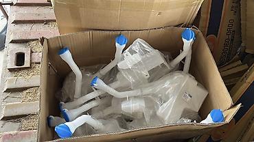 Бачок омывателя лобового стекла (комплект с насосом) - Два резервуара омывателя с длинной горловиной и синими крышками. - Встроенные электрические насосы омывателя с разъёмами и подводящими шланга...