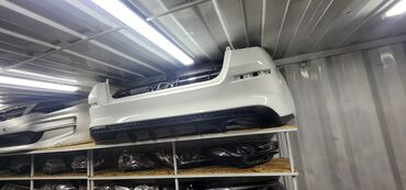 Задний бампер для автомобиля (рестайлинг), седан/хэтчбек. Характеристики: - Материал: пластик (штатный заводской). - Цвет: темный (черный/графит). - Комплектация: бампер в сборе с посадочными мес...