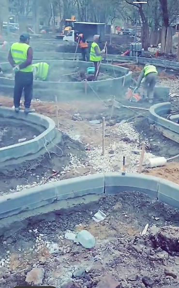 - Профессиональная укладка бордюрного камня по прямым и криволинейным траекториям (радиусные участки, плавные дуги, сложные схемы).