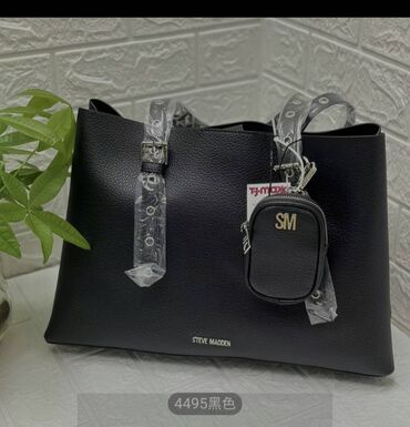 Сумка-тоут Steve Madden, цвет черный. - Материал: плотная фактурная экокожа с зернением. - Фурнитура: металлик цвета серебра; фирменные гравировки на бегунке молнии и карабинах. - Комплектация: ми...
