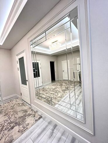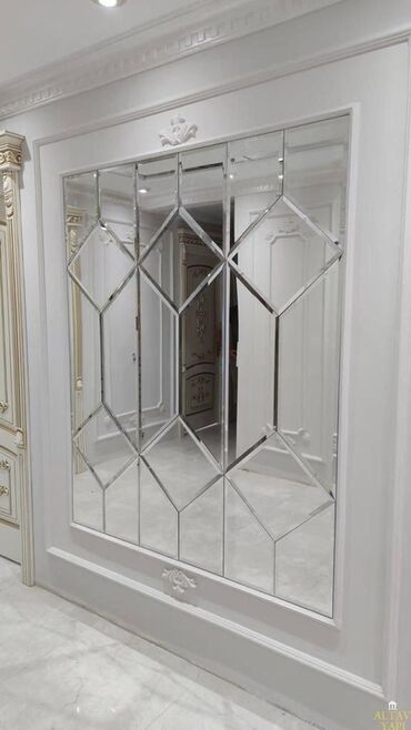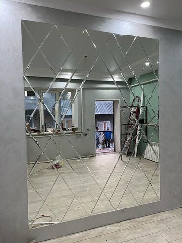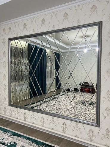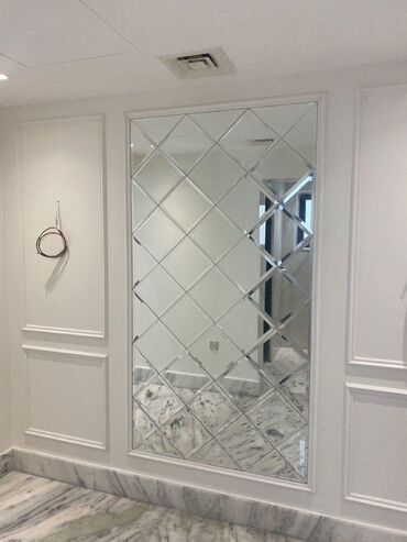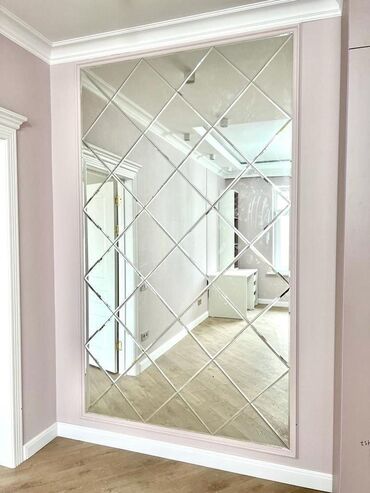 - Настенные зеркальные композиции из отдельных фасетированных сегментов, собранных в ромбовый или диагональный узор.