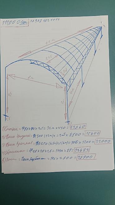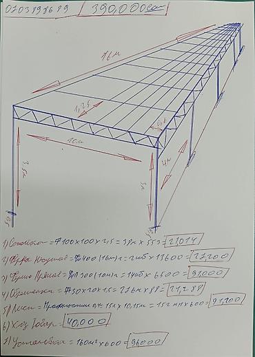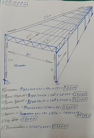 фермы на навесы и на склады 40х40х2 рошитаны на ногруску от 10 метров до 16метров сена за погонный метр 840сом металл росийский