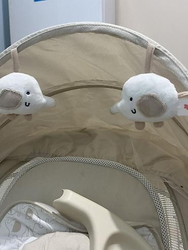 - Электронный блок качания в основании: плавное укачивание, сенсорные кнопки управления. Питание от сети (виден провод).