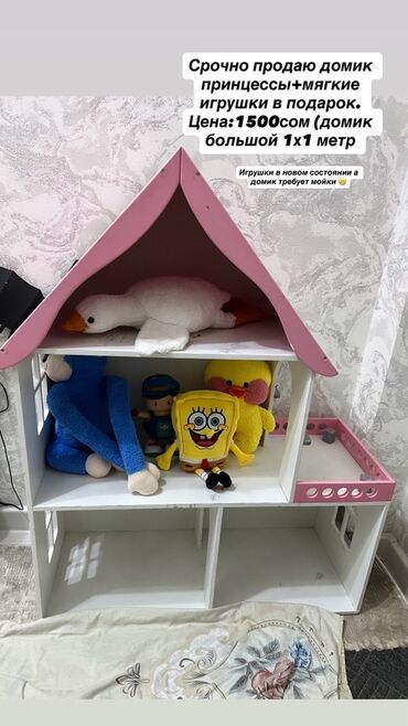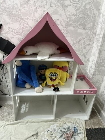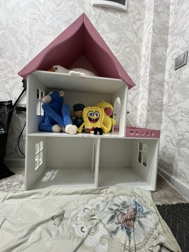 Деревянный кукольный домик с мебелью, 2 этажа - Размеры: 59.5 × 39.5 × 48.5 см (Д×Ш×В). - Материал: дерево/МДФ с безопасной окраской. - Планировка: гостиная и кухня на первом этаже, спальня и ванн...