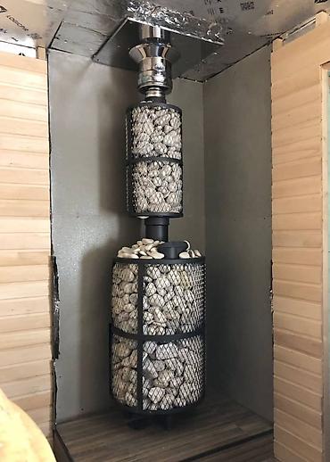 - Сетчатый кожух по периметру для большой закладки камней: равномерный прогрев, мягкий пар.