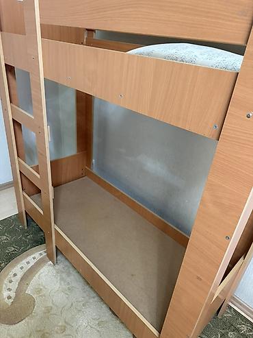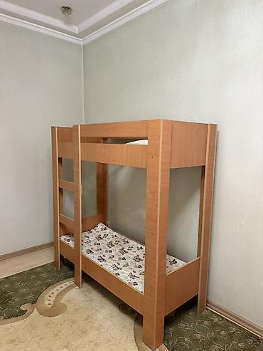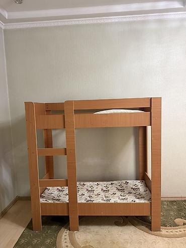 Двухъярусная кровать из ЛДСП под дерево (цвет — тёплый бук/вишня). Компактная и функциональная модель для детской или гостевой комнаты.