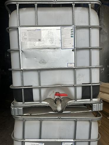 Пластиковые кубовые емкости IBC (еврокубы) с металлической обрешеткой. Характеристики: - Объем: приблизительно 1000 л (типовой IBC). - Материал бака: полиэтилен высокой плотности (HDPE). - Цвет: ч...