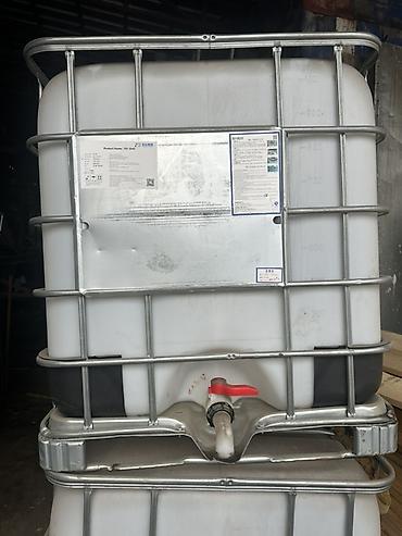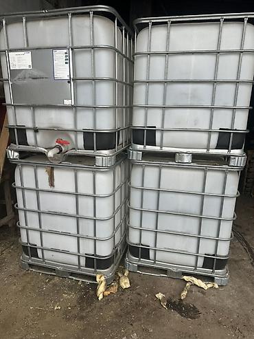 Пластиковые кубовые ёмкости (IBC-контейнеры) в металлической обрешётке. Характеристики: - Объём: примерно 1000 л - Материал бака: пищевой/технический полиэтилен (HDPE) - Усиленная оцинкованная кле...