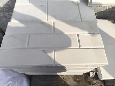 - Конструкция: плита утеплителя с облицовочными элементами под «кирпич»/рельефные прямоугольные вставки. С тыльной стороны — слой пенополистирола, спереди — жесткая облицовка с фасками.
