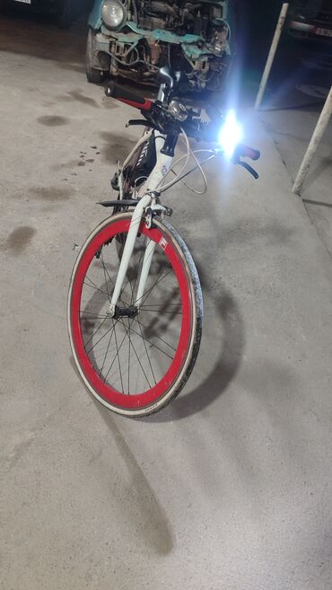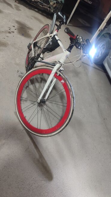 - Колеса 28" с глубокими красными ободами, покрышки Kenda.
