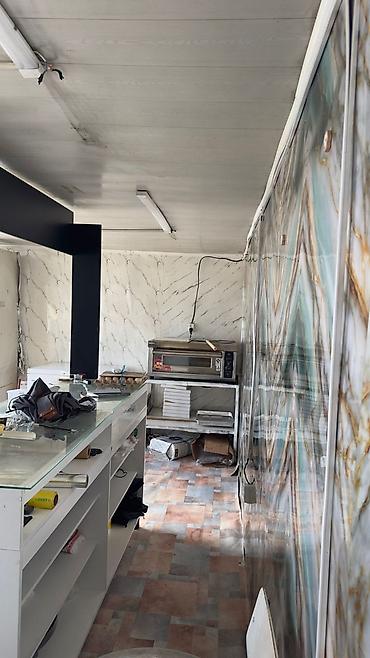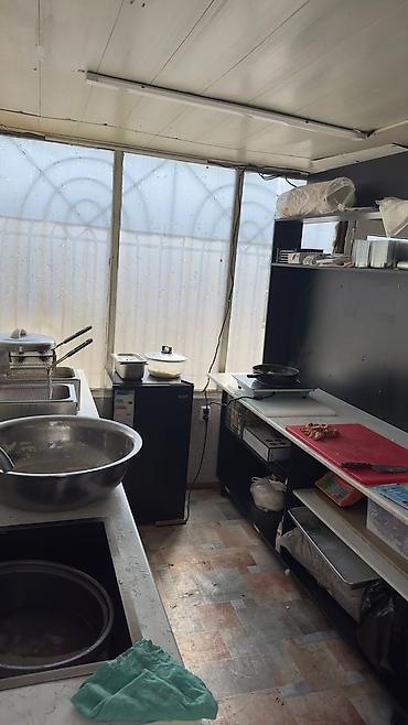 Компактный торговый павильон с полностью оборудованной рабочей кухней для приготовления и выдачи блюд на вынос.