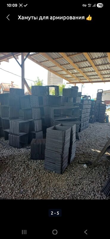 Арматурные хомуты/скобы из стальной проволоки для армирования и вязки каркасов. - Материал: стальная проволока (ребристая/гладкая по партиям на фото). - Формы: прямоугольные и П‑образные хомуты,...