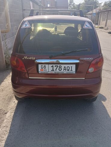 Daewoo Matiz, хэтчбек 5 дв., бордовый цвет. Кыргызские номера 178 AQI (регион 08). Компактный городской автомобиль с экономичным мотором.