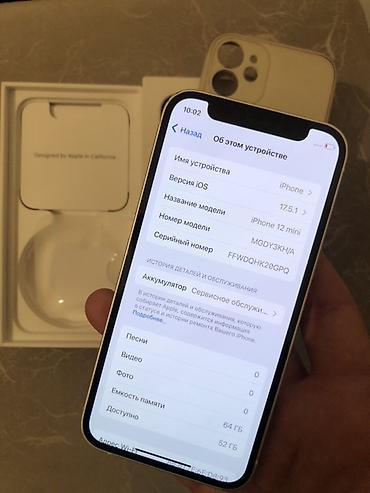 IPhone 12 mini, Б/у, 64 ГБ, Белый, Зарядное устройство, Кабель