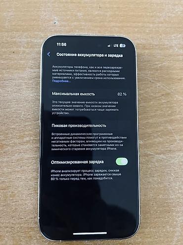 - Аккумулятор: максимальная емкость 82% (скриншот «Состояние аккумулятора»), включена «Оптимизированная зарядка».