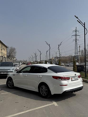 Kia К5, белый седан бизнес-класса. Основные характеристики и оснащение: - Кузов: 4-дверный седан, белый цвет, заводской аэродинамичный обвес, спойлер на крышке багажника. - Оптика: линзованные пер...