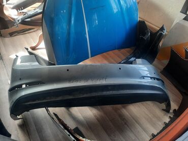 Задний бампер для Kia K5 (оптика под двухсекторные накладки/диффузор «спорт»). - Материал: пластик (ABS). - Цвет: белый с черными вставками, интегрированный диффузор и декоративные «насадки» по б...