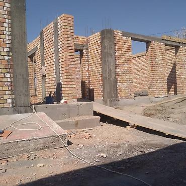 Кладка кирпича каменщик Озбек бригадалар Кирпич койобуз Кирпичный одноэтажный дом (коробка с перегородками) - Материал стен: полнотелый/силикатный кирпич с перевязкой; наружные углы и простенки ус...