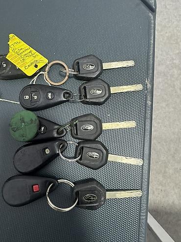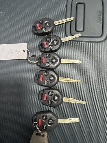 - Обычные ключи Subaru с транспондером — 6 шт. На некоторых экземплярах — брелки/жетоны и наклейки с модельной информацией.