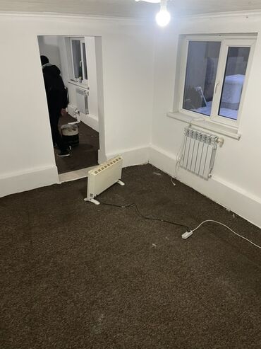 - Два изолированных пространства, соединённых проёмом; в каждом — окна ПВХ и радиаторы.