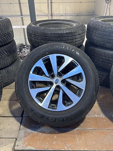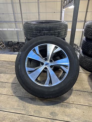 - Диски: оригинальный дизайн Subaru, многоспицевые, под 5 болтов (5×100/5×114.3 — визуально 5 отверстий; точный PCD и вылет не указаны на фото).