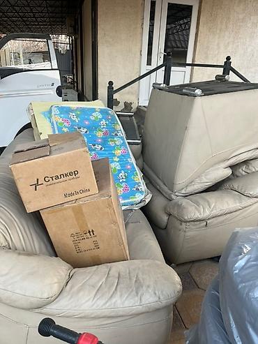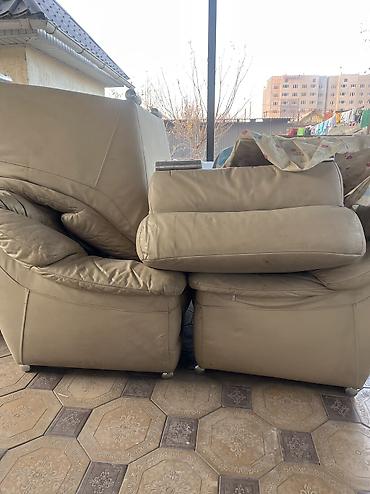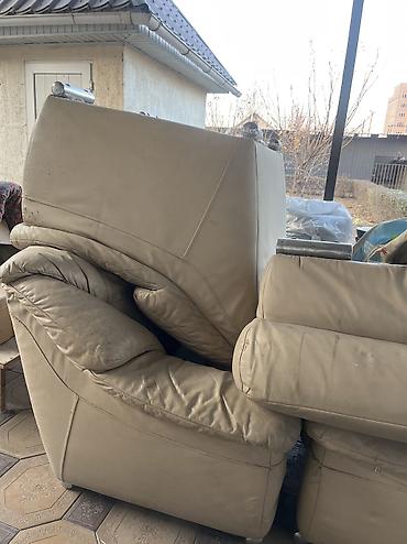 Мягкая мебель: комплект из кожаных бежевых предметов